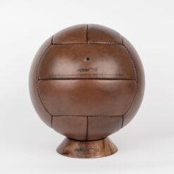 Découvrez le ballon de foot en cuir vintage de Rebond ! Ballon de football Taille 5, 12 panneaux en cuir naturel à lacets et tannage végétal. Fabriqué en Inde dans un atelier commerce équitable ce modèle est inspiré du modèle de ballons des années 1940. Vraie pièce de maroquinerie et d’artisanat. Un ballon de collection livré avec son socle en bois gravé et son sac en coton naturel biologique. Retrouvez tous les ballons en cuir vintage ici.