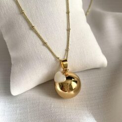 3. Bola de grossesse doré avec pierre de nacre en forme de coeur