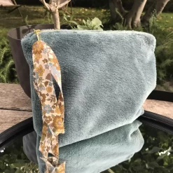 Pochette isloise éponge bambou vert d’eau dont 4 lingettes démaquillantes coton lavable Oeko Tex.
